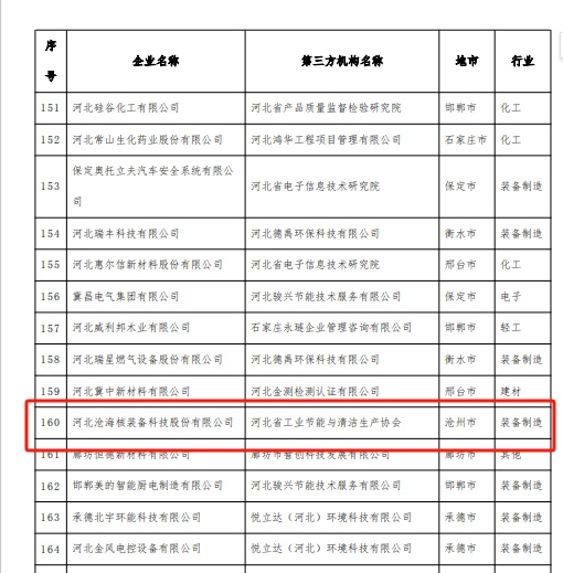河北省“綠色工廠”公示榜單截圖(部分)
