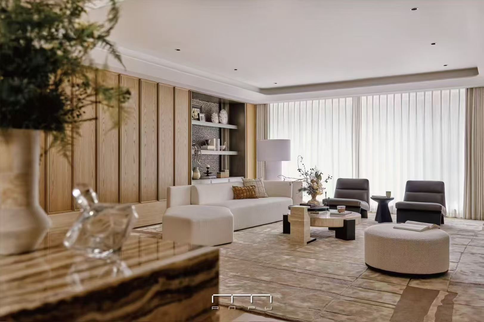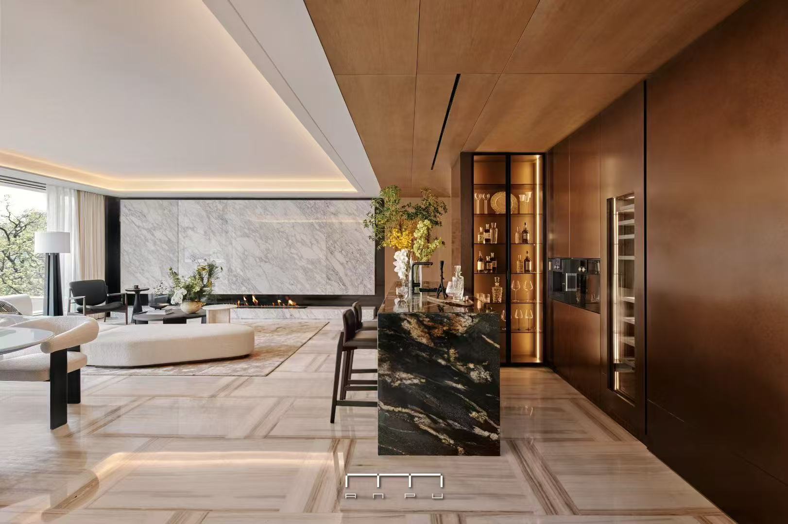 同頻杭州大平層高端序列--AMBER98 安鉑中心營造理念,安璞作為'安’字系壹號作品,以現代主義經典,致敬城市源點,代言永恒的杭州封面。