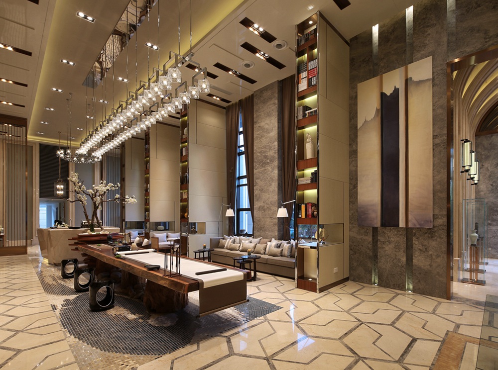 項目強調(diào)“當代屋檐下的明媚家風(fēng)”,售樓展廳的風(fēng)格注重品質(zhì)感,沒有拘泥于市場上傳統(tǒng)意義的室內(nèi)風(fēng)格,而是從容地揉合了不同