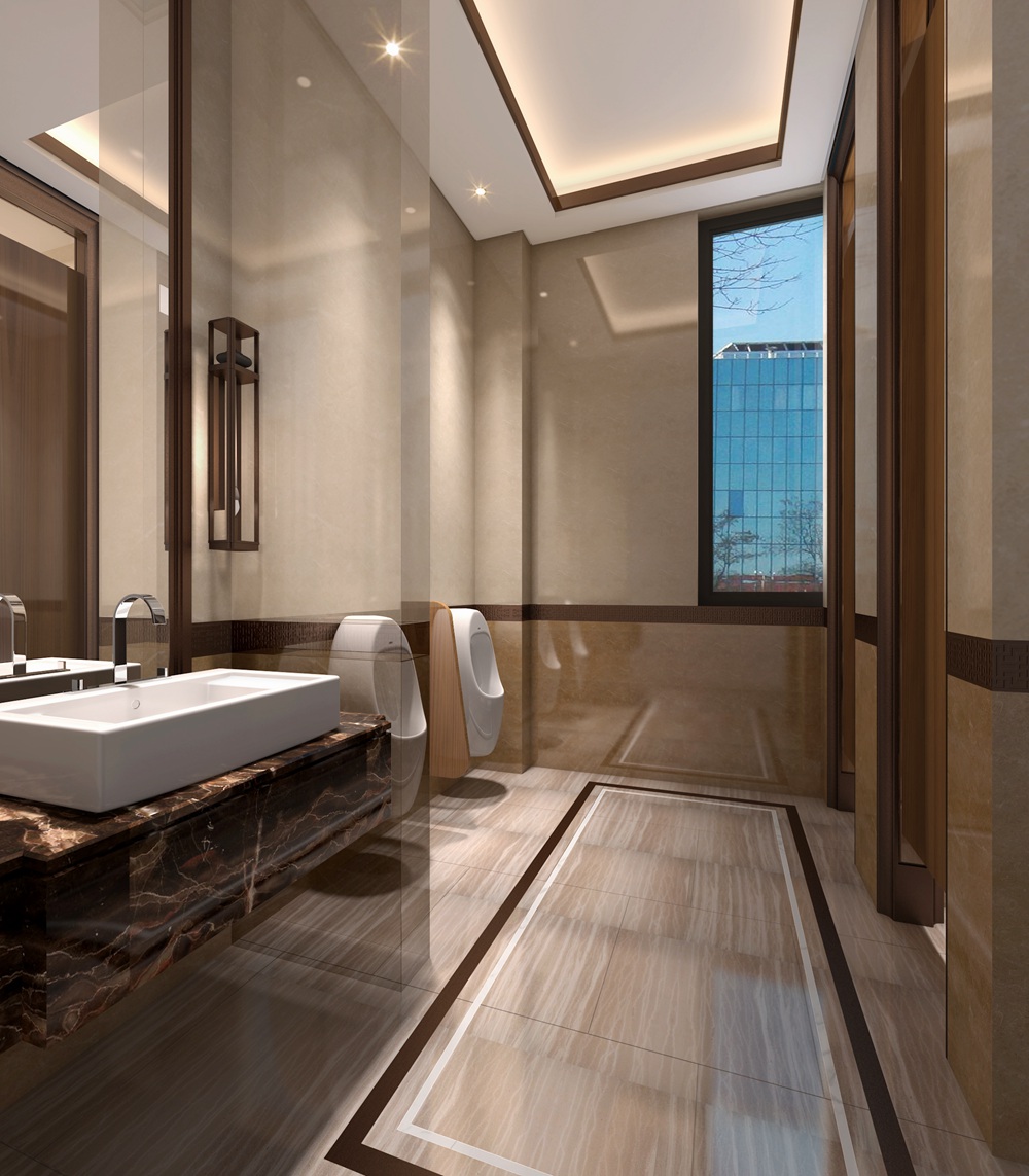 官邸氣質的中式展廳,運用墻頂浮雕繪畫藝術手法表現錢塘江兩岸的山水意境。